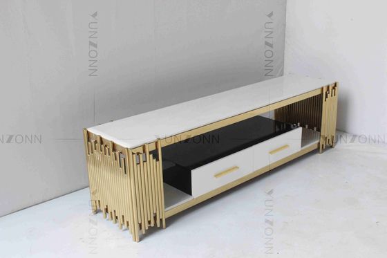 Нержавеющая сталь таблиц роскошной таблицы ТВ золота белая мраморная верхняя с ящиками для живущей комнаты