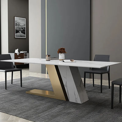 Светлый роскошный спеченный каменный обеденный стол и семья комбинации стула современная простая прямоугольная небольшая