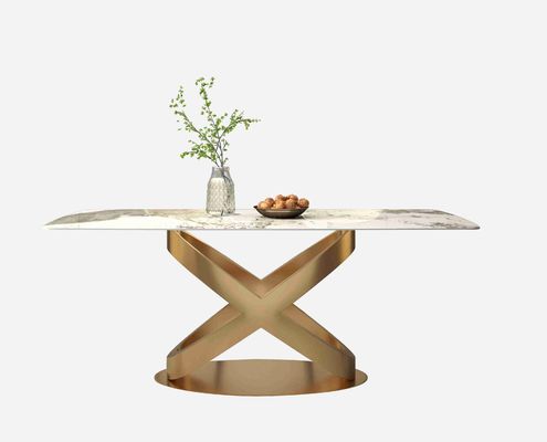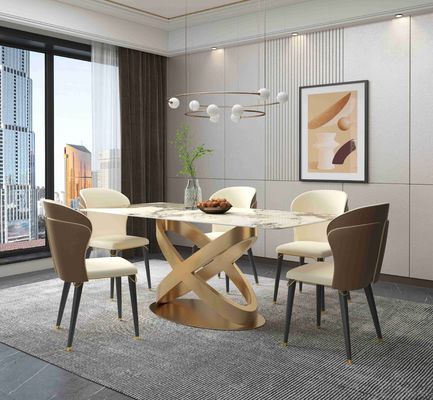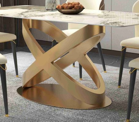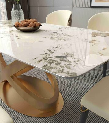 Современный белый прямоугольный каменный обеденный стол с постаментами нового дизайна бронзовыми