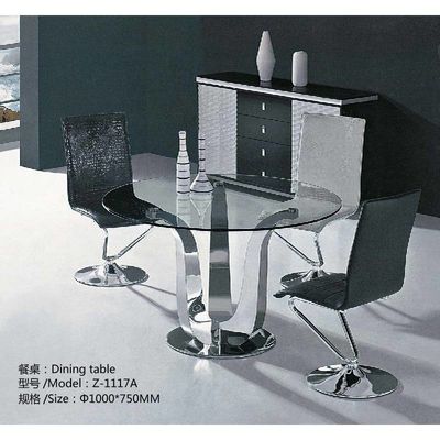 Обеденный стол главным образом простого дизайна, соответствующий для приобретения в доме. Простой стиль прочен, не цвет цветка, но классический серебр нержавеющей стали как главный цвет. Столешница может выбрать использовать мрамор или панель MDF. Этот стиль всегда был куплен в больших количествах главными торговцами мебели.