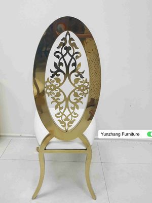 Новый дизайн эллипсиса дизайна со свадьбой цветка высокой задней золотой обедая стул