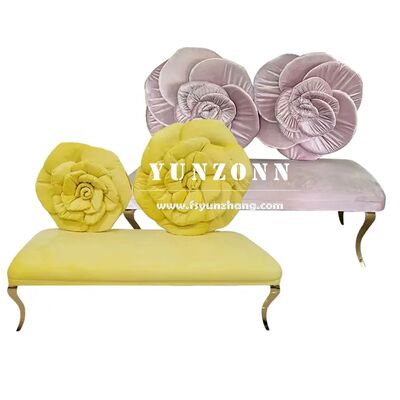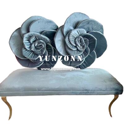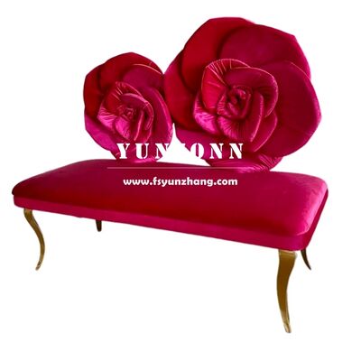 Современный диван из нержавеющей стали с дизайном спинки в виде розового цветка, розово-красное бархатное сиденье для отеля, свадьбы, любимого человека