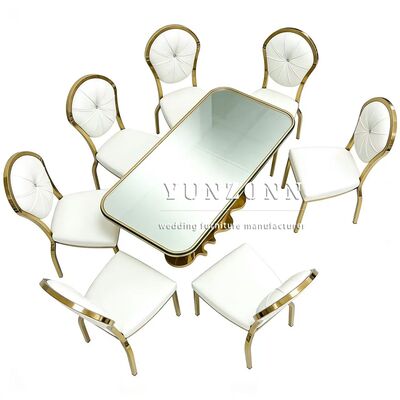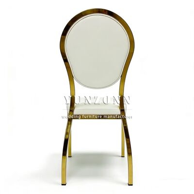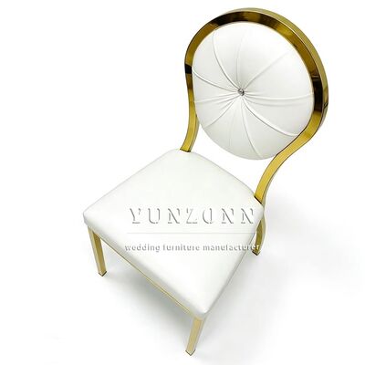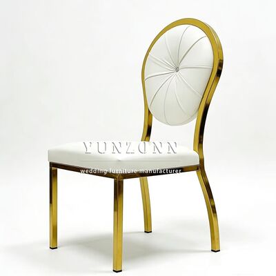 Горячее событие Круглый спинный дизайн Золотая вечеринка Нержавеющая сталь Гостиничный свадебный стул Фабрика оптовой продажи Стальной спинный стул Гостиничный банкет |