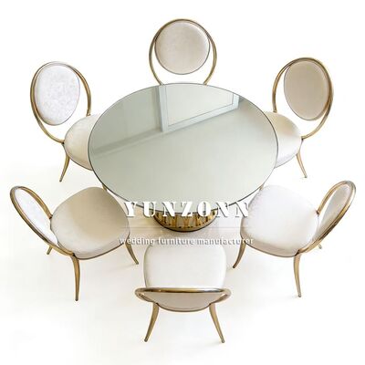 | Наименование продукта: | Роскошные прочные современные стулья из нержавеющей стали с золотыми подушками с коническими ногами для свадебных банкетов на открытом воздухе |
