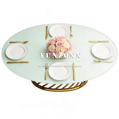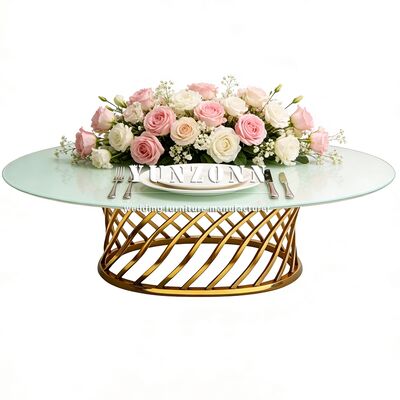 | Наименование продукта: | Качественный зеркальный стеклянный верх с нержавеющей сталью Овальный стол для свадьбы Ужин Банкетная вечеринка |
