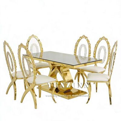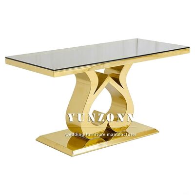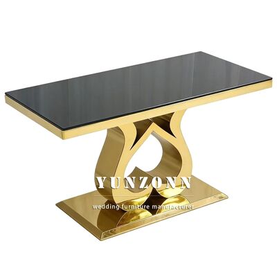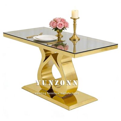 | Название продукта: | Дешевая мебель для мероприятий, вечеринок, свадебный стол для молодоженов, золотой стол из нержавеющей стали со стеклянной столешницей, прямоугольный свадебный обеденный стол |