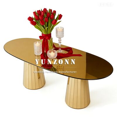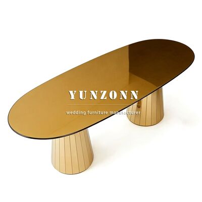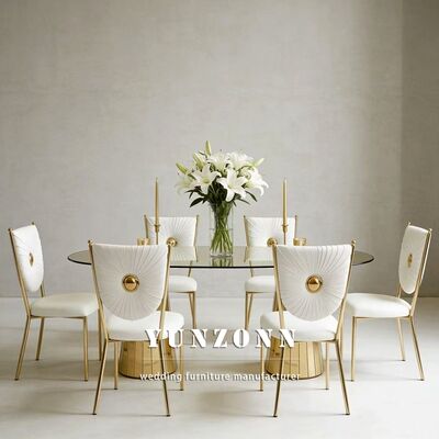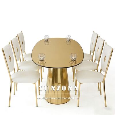 | Название продукта: | Золотой обеденный стол и стулья из нержавеющей стали со стеклянной столешницей, свадебная мебель для отелей |