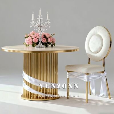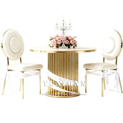 | Название продукта: | Современный роскошный золотой свадебный стол для торта, новейший круглый приставной столик из нержавеющей стали для гостиничной и свадебной мебели для помещений/улицы |