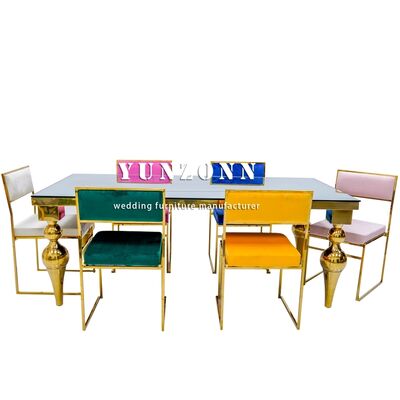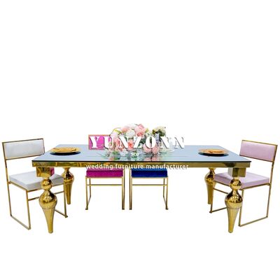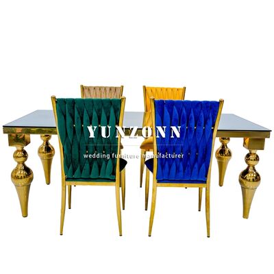 | Название продукта: | Мебель для столовой в отеле Foshan Factory по низкой цене, золотой стол из нержавеющей стали с зеркальным стеклом для свадебного стола |