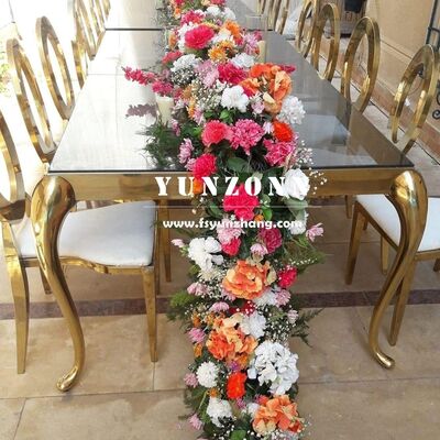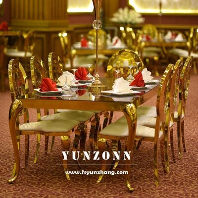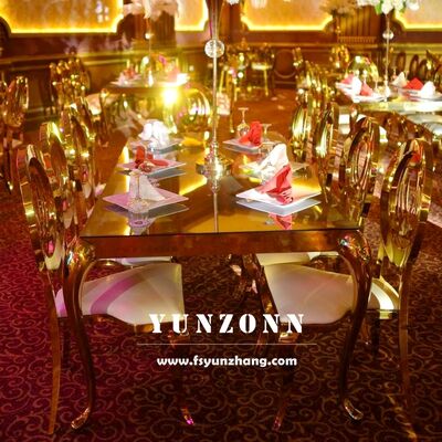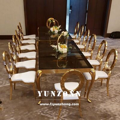 | Наименование продукта: | Современный прямоугольный обеденный стол с рамой из нержавеющей стали и стеклянной крышей для открытых мероприятий для свадеб |