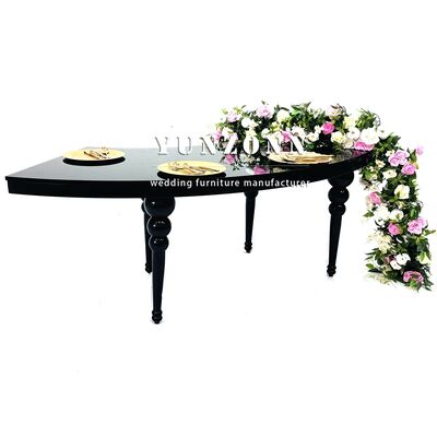 | Product Name: | Large Banquet Hall Black Metal Serpentine Half Moon Wedding Table |