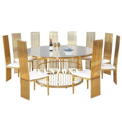 | Название продукта: | Золотые обеденные круглые столы из нержавеющей стали для мероприятий, дизайн стола и стульев |