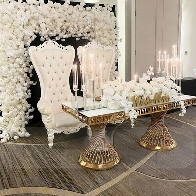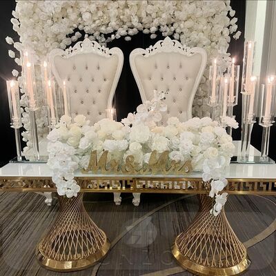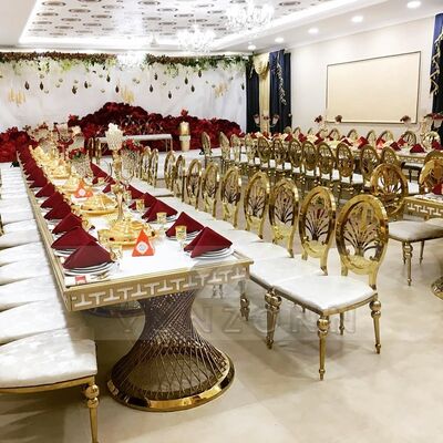 | Название продукта: | Настраиваемые прямоугольные свадебные столы из золотой нержавеющей стали в современном металлическом дизайне для столовых, ресторанов, вечеринок, отелей, залов |