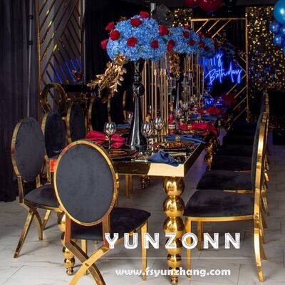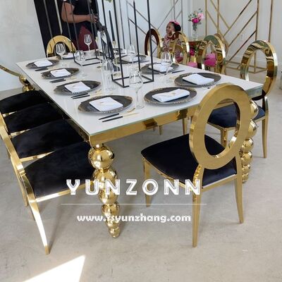 | Наименование продукта: | Современный роскошный прямоугольный свадебный и обеденный стол с шариками из нержавеющей стали ноги для отелей и залов |