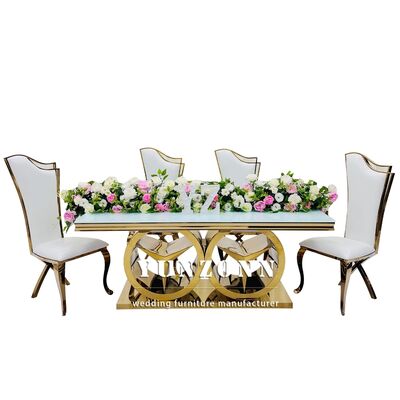 | Название продукта: | Современный золотой прямоугольный обеденный стол с основанием Benz, роскошная мебель для свадебных мероприятий для наружного использования и использования в отелях, столешница из стекла/МДФ |