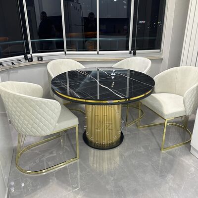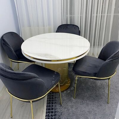 | Название продукта: | Современный обеденный стол из нержавеющей стали с золотым покрытием и круглым мраморным основанием для дома, виллы, отеля, свадьбы, стильная современная мебель |