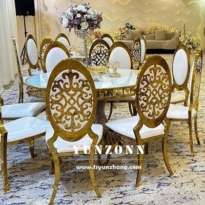 | Название продукта: | Роскошные королевские и современные золотые стулья для отелей со специальным резным узором из нержавеющей стали для свадебного обеденного стула |